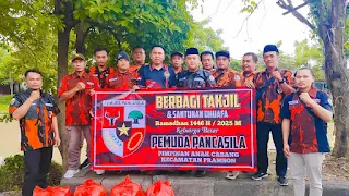 Sidoarjo, infopol.co.id — Ormas PP(Pemuda Pancasila) PAC Kec. Prambon berbagi Takjil dan santunan untuk kaum Dhuafa, Hari ini Sabtu(22/3/25) yang dilaksanakan disebelah timur pos Polisi Pakerin Prambon.