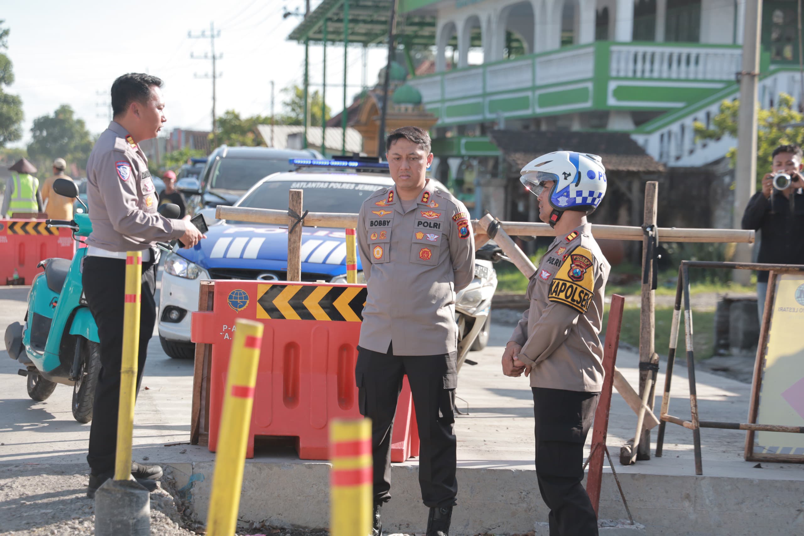 JEMBER, Infopol.co.id – Guna mencegah terjadinya kecelakaan lalu lintas, Kapolres Jember AKBP Bobby A. Condroputra, S.H., S.I.K., M.Si. turun langsung melakukan mitigasi pada jalur selatan Jember. Dalam kegiatan tersebut, Kapolres didampingi oleh Wakapolres Kompol Fery, Kasat Lantas AKP B. Bagas Simamarta dan Kasi Humas IPTU Siswanto. Selasa, (22/04/2025).